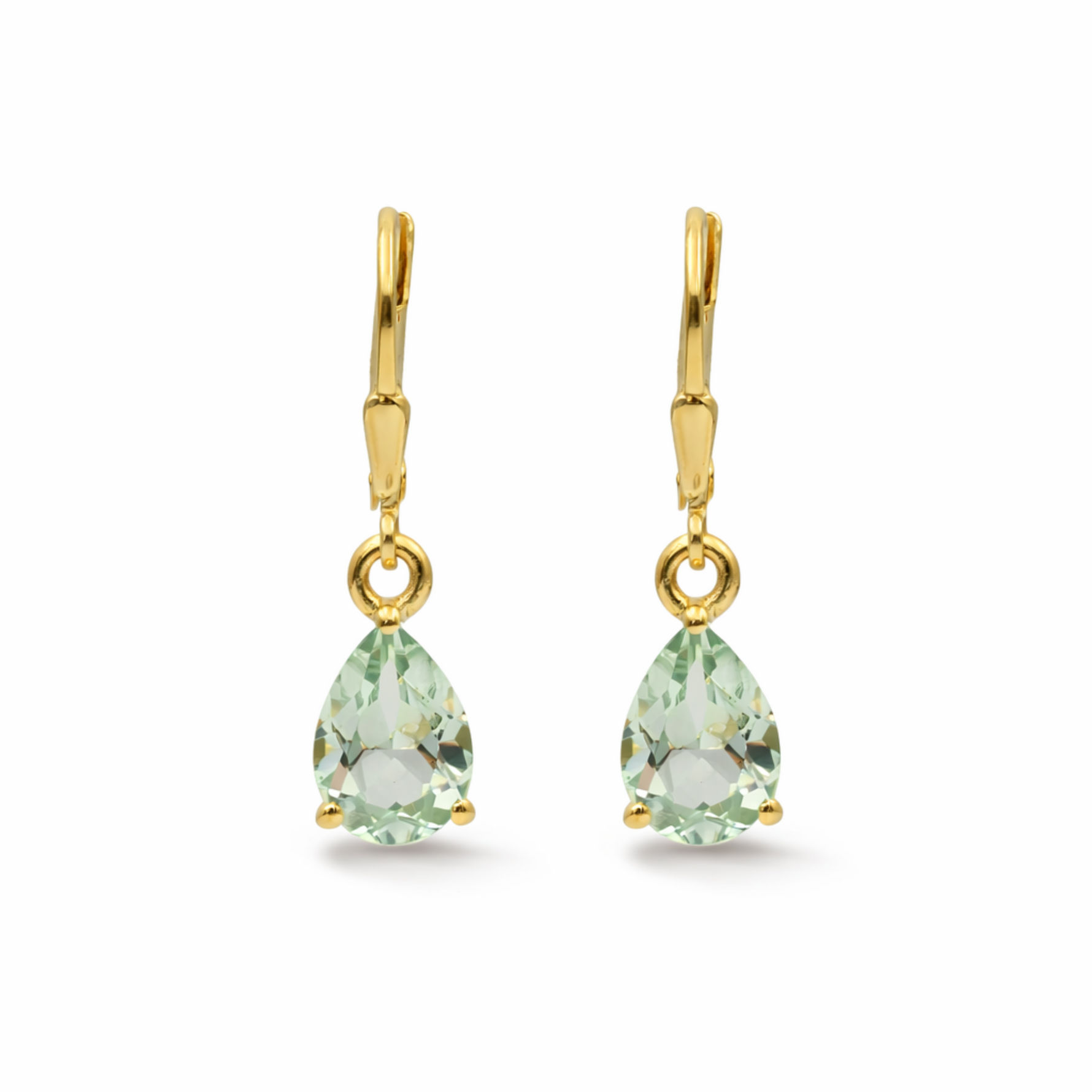 Bochada Groene Amethist Kristal Oorbellen – Peer Vorm – 925 Zilver 14K Goud Verguld